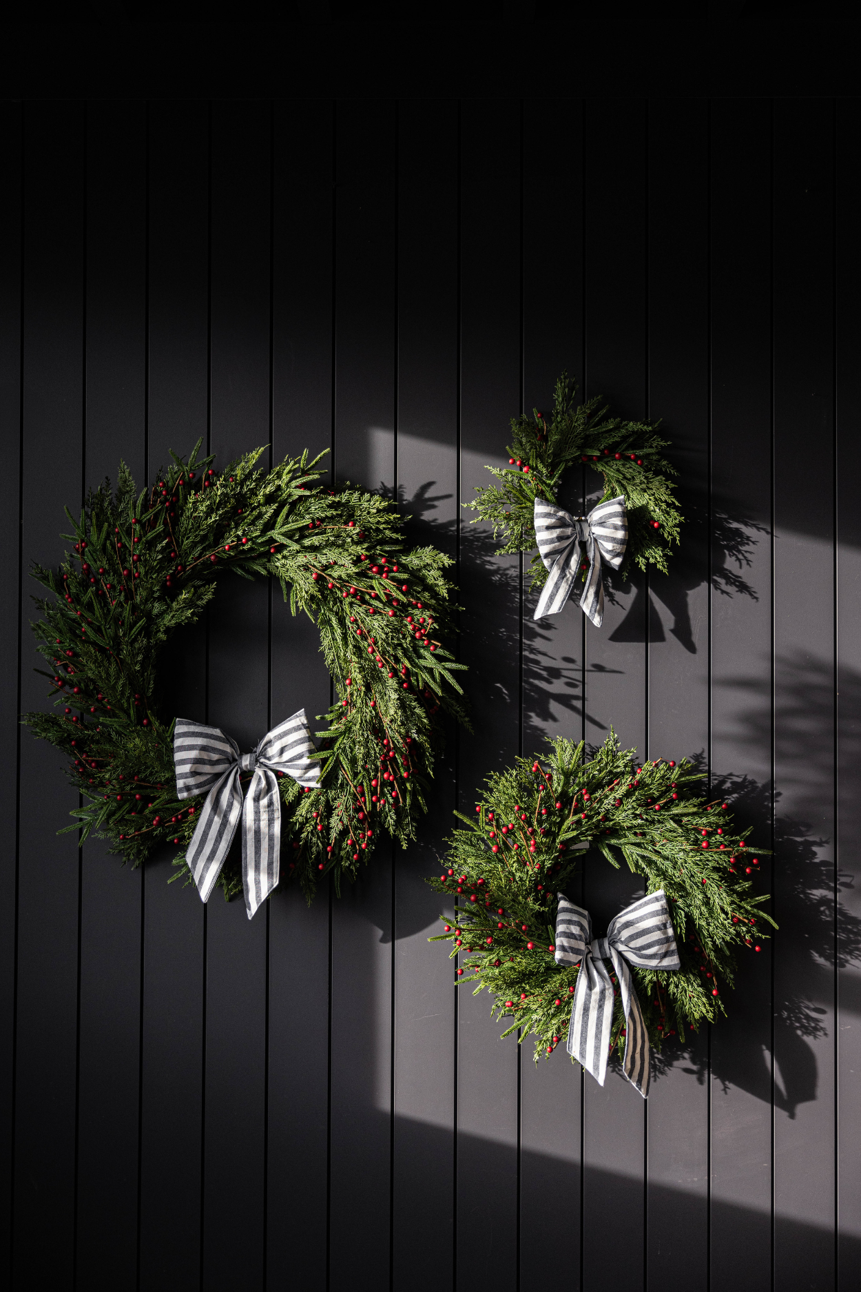 The Luxe B Co Striped Blue Fabric Bows are made from luxurious cotton. Each bow is hand-crafted with a silk ribbon in the centre, making it easy to hang them throughout your home. With its bold, eye-catching blue striped detailing, this bow can easily be transitioned from your holiday decor to spring decor. Use these decorative bows in your nurseries, doorways, mantles or as wall decor. These Striped Blue Fabric Bows come in 3 different sizes, perfect for attaching to trees, wreaths, or incorporating into gift wrapping.