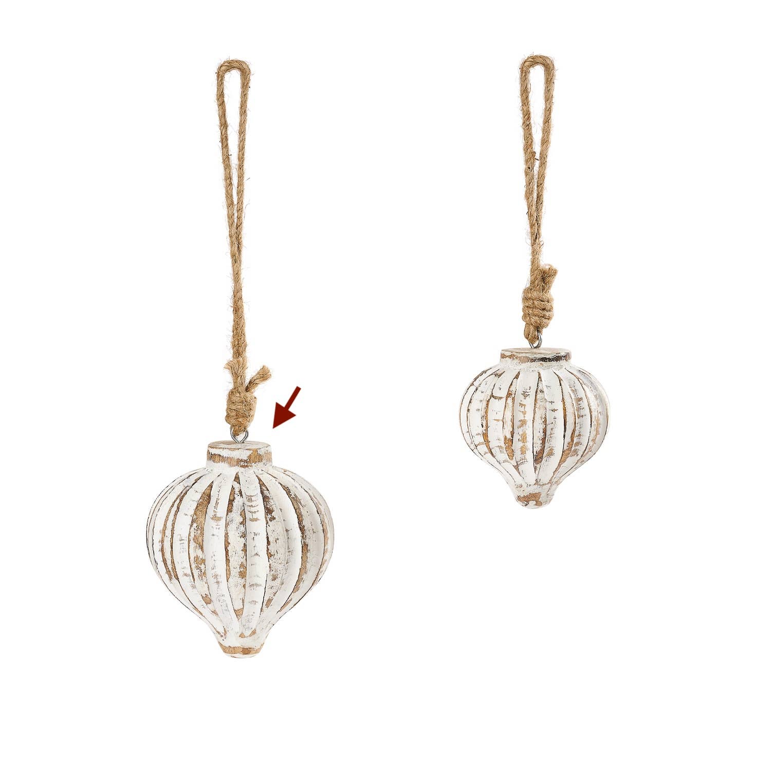Wooden Cedar Ribbed Ornament has a pristine white finish, designed to add elegance to your holiday decor. Expertly crafted with intricate ribbed detailing, this ornament combines rustic charm with a touch of modern sophistication.