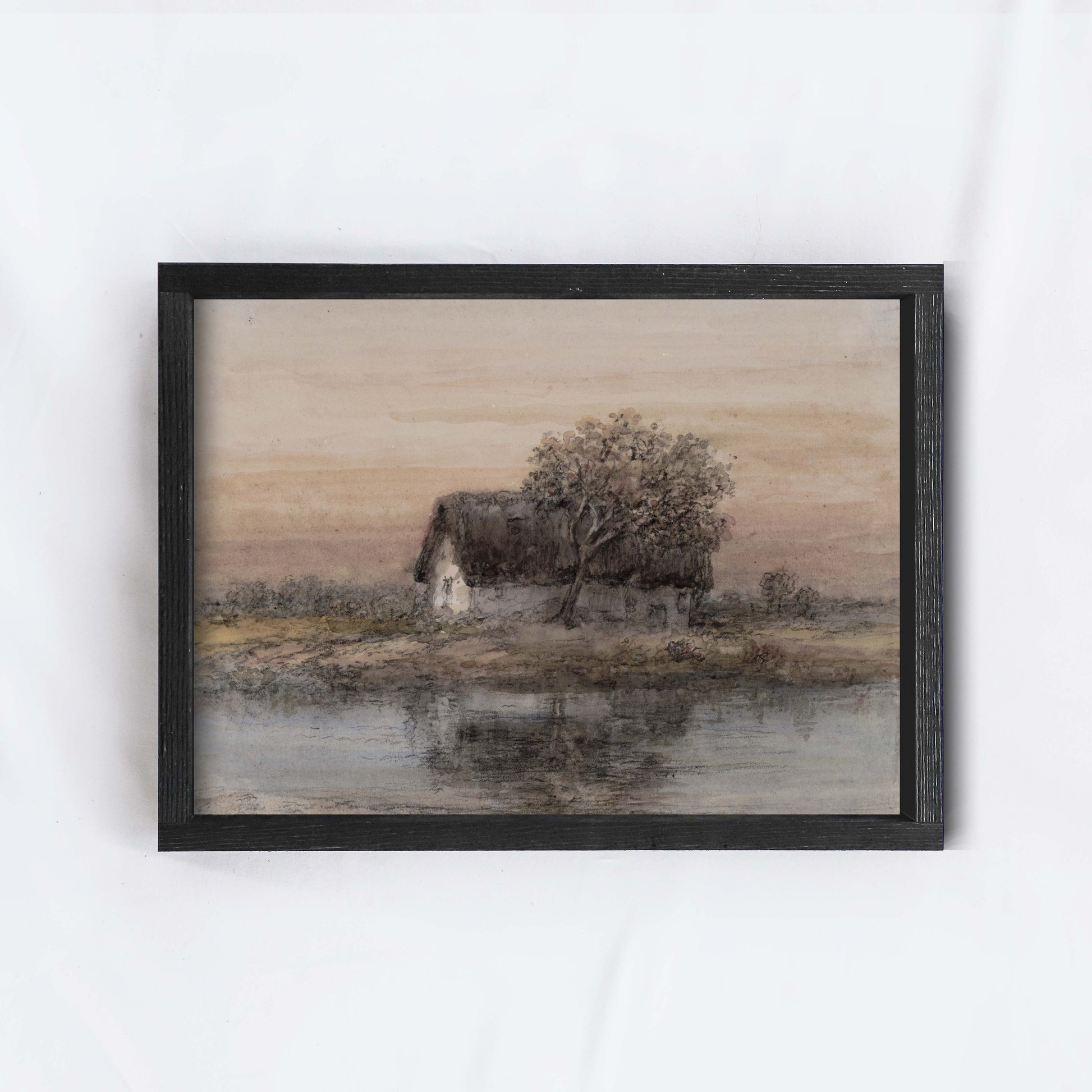 Cottage by the water printed on MDF backing and framed in a stained wood