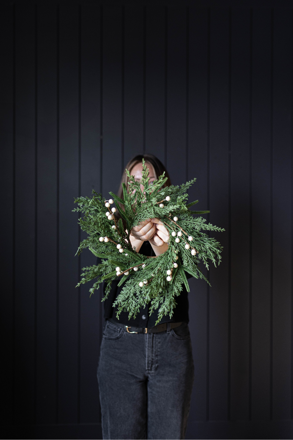 White Plum Berry Norfolk Cypress Real Touch Wreath is a high-quality, realistic "Real Touch" holiday decoration and the most popular item of the 2025 Christmas Decor. Natural Touch technology makes the Wreath look realistic by giving it a lifelike appearance and feel.